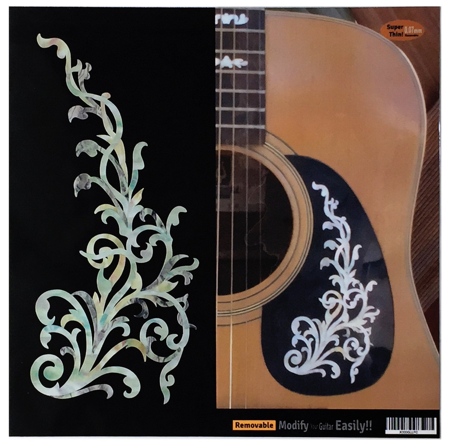 もちろんピックガードも映えますが、ボディに貼っても納得できるようなカーブラインに仕上げています。