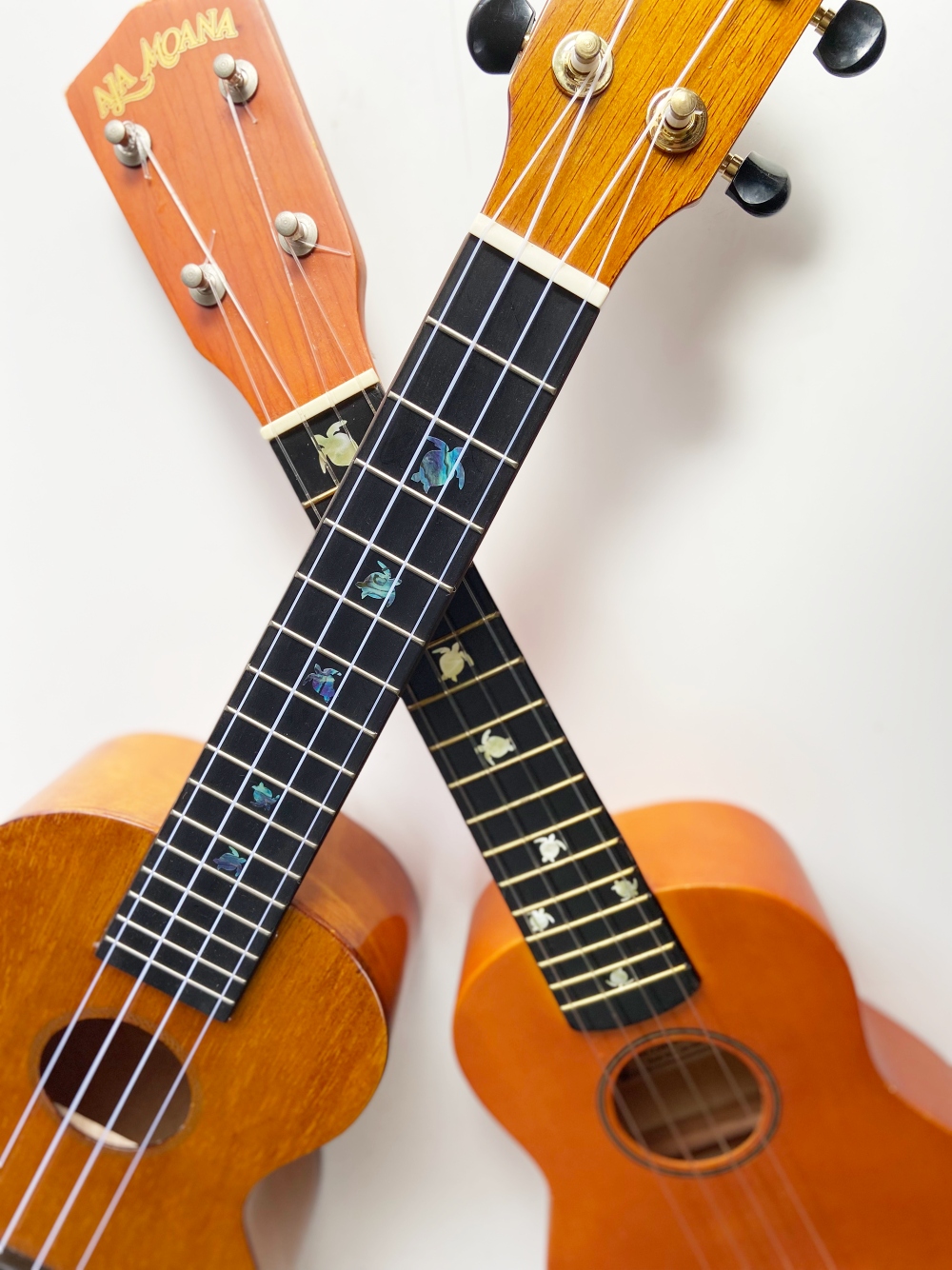 かわいいウミガメが ウクレレの指板で泳ぎます。